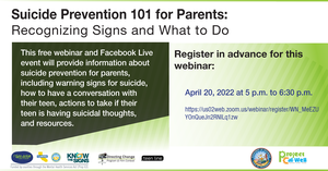 Suicide Prevention 101 Webinar for Parents (English and Spanish)
